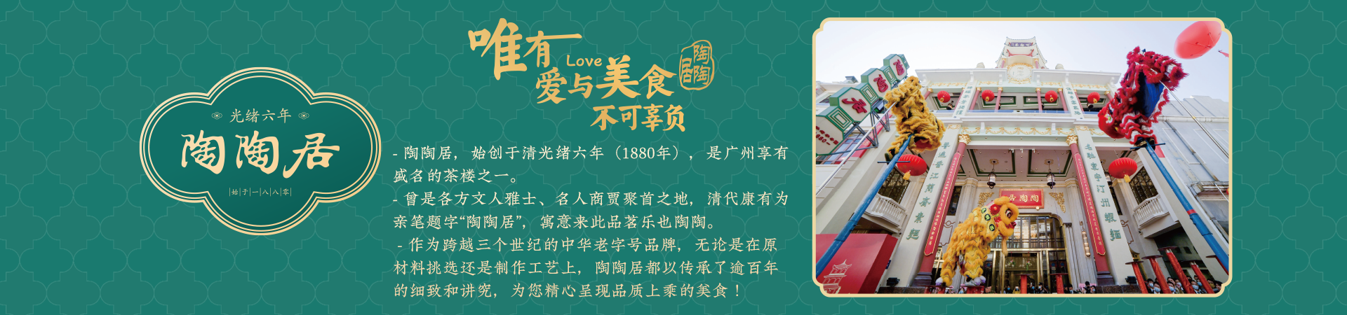 The "Tao Tao Ju" brand, a time-honored Chinese brand, originated in 1880 (the sixth year of the Guangxu Emperor's reign) and has a history of 143 years, making it one of the most renowned tea houses in Guangzhou. It was once a popular gathering place for scholars, artists, and prominent business people. The name "Tao Tao Ju" was even hand-written by Kang Youwei, a famous scholar of the Qing Dynasty, signifying the leisurely enjoyment of tea and conversation.